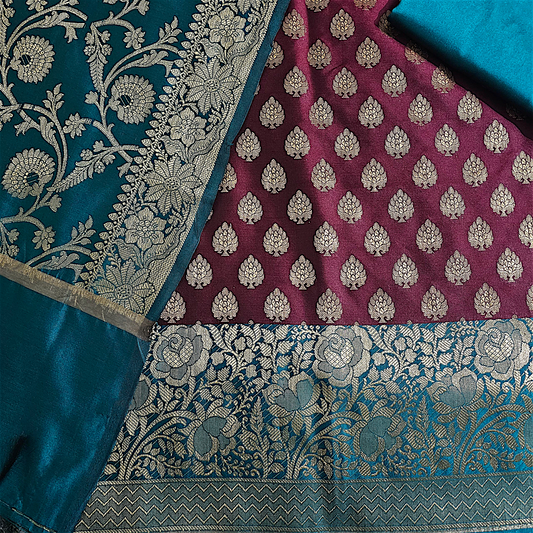 Mehroon Banarasi Silk Suit with silver Zari Work