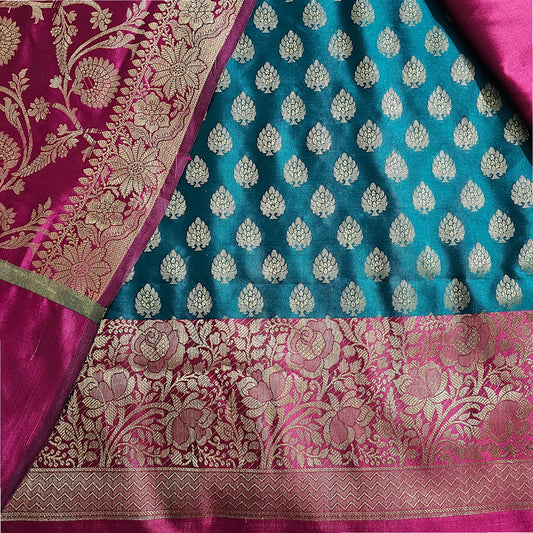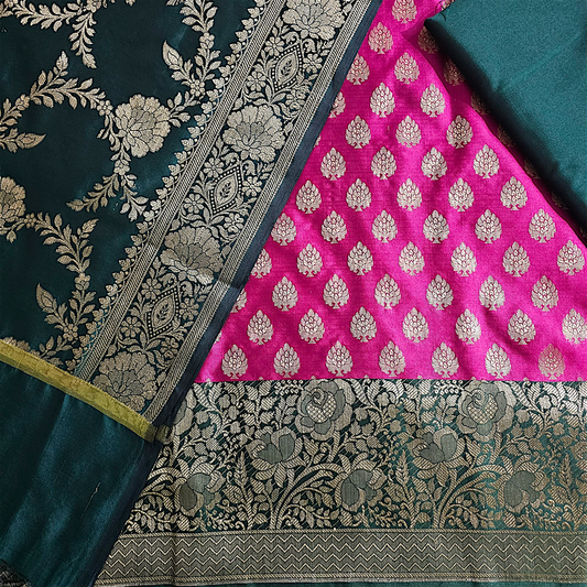 Bottle Green & Rani Pink Banarsi Satin Silk Suit